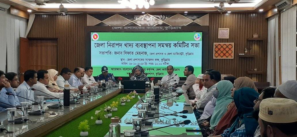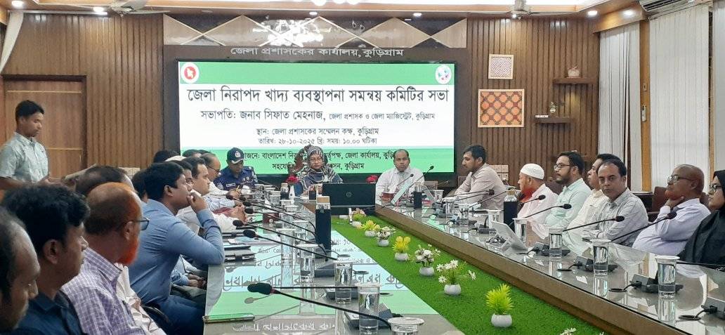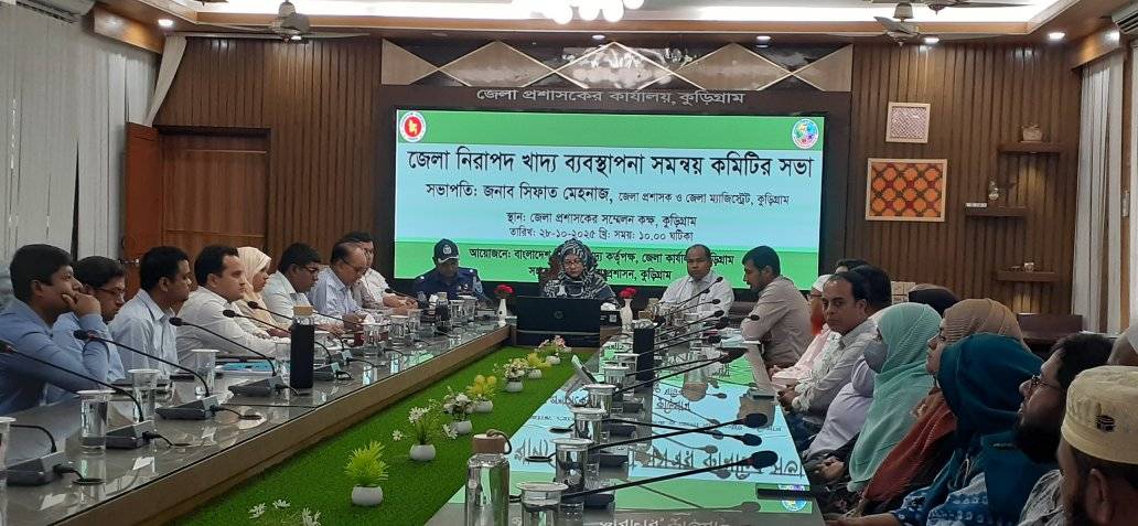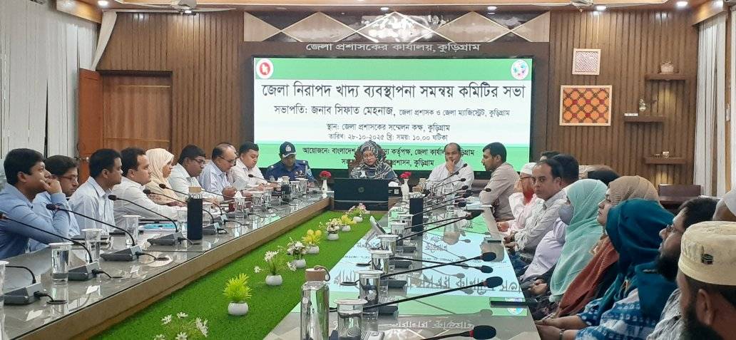 অদ্য ২৮ অক্টোবর, ২০২৫ খ্রিস্টাব্দ তারিখে জেলা প্রশাসন, কুড়িগ্রাম ও বাংলাদেশ নিরাপদ খাদ্য কর্তৃপক্ষ, জেলা কার্যালয়, কুড়িগ্রাম এর আয়োজনে জেলা নিরাপদ খাদ্য ব্যবস্থাপনা সমন্বয় কমিটি, কুড়িগ্রাম এর সভা অনুষ্ঠিত হয়েছে।